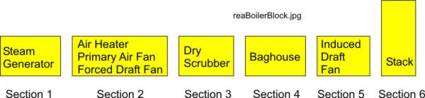 The block diagram does not show various systems in a serial fashion. For example, the Forced Draft Fan, shown in the second block, supplies air to the steam generator shown in the first block.